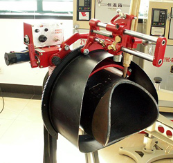 Наиболее высокую точность реза показывают седельные машины, у которых горелка перемещается по жесткому подковообразному рельсу, охватывающему трубу.