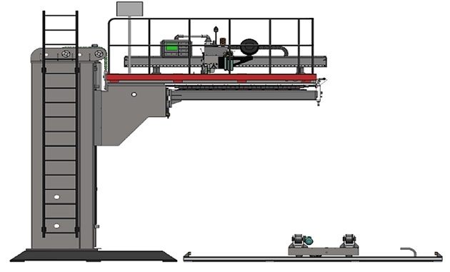Если диаметр изделий превышает 3000 мм и/или толщина стенки превышает 12 мм, то применяется традицонное решение для сварки обечаек больших диаметров - сварочная колонна и сварочный роликовый вращатель. На колонну устанавливается оборудование, необхоимое для плазменной и аргоно-дуговой сварки.
