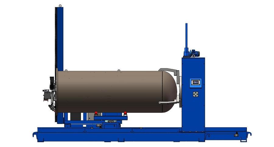 Конструктивно оборудование представляет собой мощную сварную прошедшую термообработку раму, на которой установлены одна или две стойки с приводом и зажимным приспособлением для фиксации изделия. На верхней части рамы смонтированы направляющие, по которым перемещаются поддерживающие опоры. С боковой стороны рамы проложены направляющие для перемещения вертикальной стойки (миниколонны). Перемещения осуществляется с помощью электропривода и пары зубчатая рейка / звездочка.