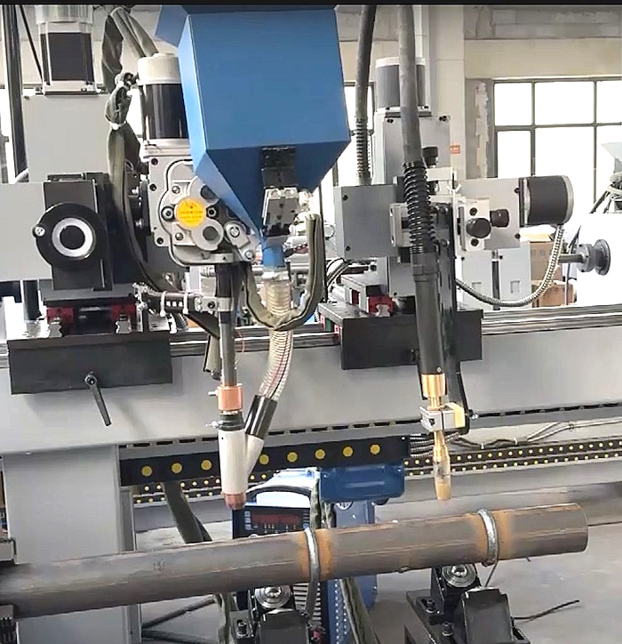 В некоторых случаях требуется, чтобы установка для сварки кольцевых швов была оснащена оборудованием для двух способов сварки. Как правило, это бывает связано с тем, что по технологии требуется использование нескольких способов сварки в процессе производства изделия. Например, для корневого шва - МИГ/МАГ, а для заполнения - сварка под флюсом. Или для корневого прохода - ТИГ с подачей присадочной проволоки, а для заполняющих проходов - МИГ/МАГ.