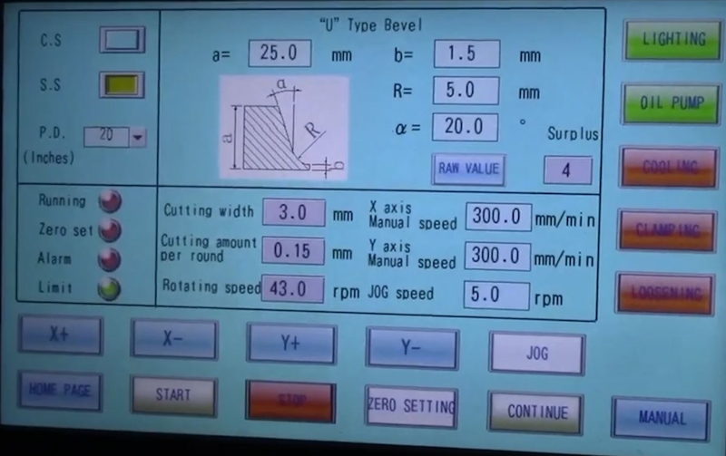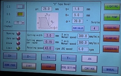Программирование осуществляется путём введения параметров трубы (материал, диаметр, толщина стенки), а также выбора из библиотеки необходимого профиля фаски и задачи ее числовых параметров.