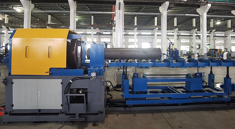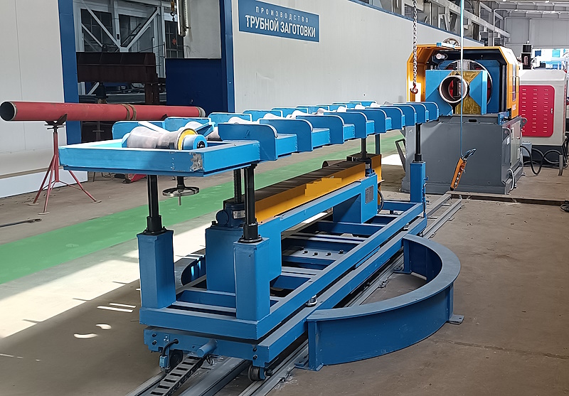 Станок укомплектован рольгангом с подъёмно-поворотной секцией, что позволяет обрабатывать оба конца трубы без использования дополнительных подъёмных приспособлений