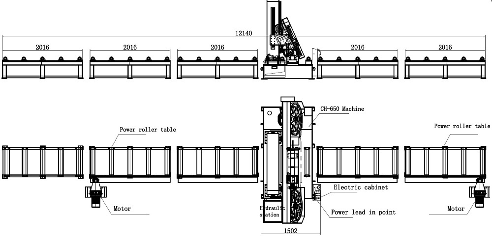 Длина входного рольганга - 6 м, выводного - 4 м, ролики покрыты изностойкой резиной.